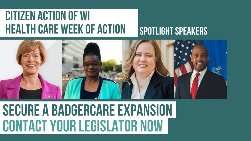 While we might have concluded our Health Care Week of Action, BadgerCare expansion is still on the line! Thousands of people across Wisconsin are left to purchase low quality plans that come with high deductibles and high co-pays so that many can’t afford to go to the doctor. For years, there have been resources to connect people with coverage through the marketplace — knowing about them or how to enroll isn’t the barrier, being able to afford a plan and use it, to see a doctor, get treatment, and heal from injury, is the problem.