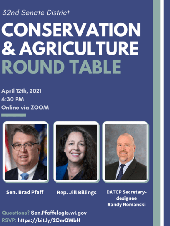 Sign up today for a virtual round table with State Senator Brad Pfaff and State Representative Jill Billings about conservation and agriculture related to the proposed state budget. It is so important that we address ALL aspects of the climate crisis, including agriculture issues.