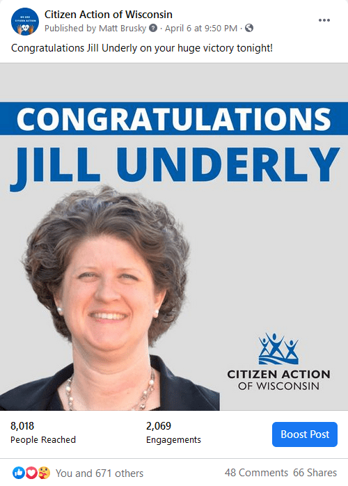 Jill Underly and 21 of 32 Citizen Action endorsed local candidates win this week!