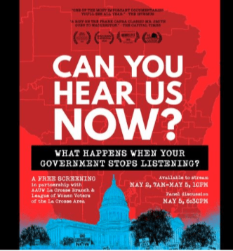 A nonpartisan coalition of Wisconsin organizations in Congressional District 3 is proud to host this special screening of Can You Hear Us Now?, a powerful new film that shows the personal and political impact of gerrymandering in the state of Wisconsin.