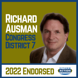Citizen Action’s North Central Organizing Co-op members are particularly passionate about this race, as they recruited Richard Ausman to run and are volunteering on his campaign. Richard believes healthcare is a right and will fight for it!