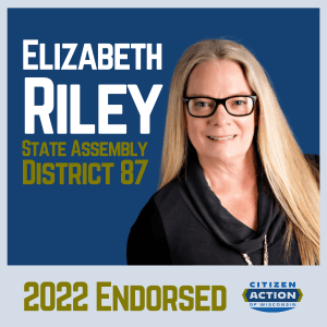 Elizabeth “Buffy” Riley has been endorsed by Citizen Action in previous campaigns, and has spent time advocating for causes important to our organization. Elizabeth is particularly strong on healthcare and fair maps.