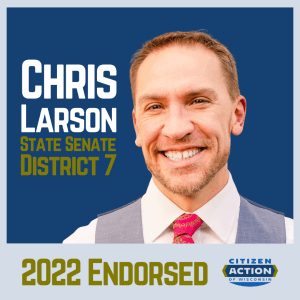 Senator Chris Larson is a recurring Citizen Action champion, giving much time and energy as a lead sponsor for the groundbreaking Climate and Jobs Package with Representative Supreme Moore Omokunde.
