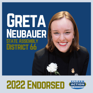 Representative Greta Neubauer believes that bringing all voices to the table and her work, including Citizen Action members, is the best way to move Wisconsin forward. Greata is a social movement organizer and fifth generation resident of Racine and just completed her first session as Minority leader.