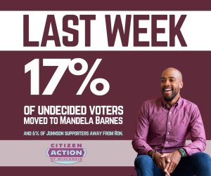 Last week, Citizen Action’s “deep canvass” moved undecided voters to support Mandela Barnes at a 17% rate!