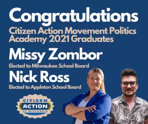 Throughout the rest of 2023 Citizen Action’s Movement Politics program will recruit and train a diverse cadre of progressive leaders throughout Wisconsin to make 2024 the most successful election year in our organization’s 40 year history. We need your help with a donation to make it possible. Thank you.