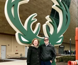 Citizen Action Northwest Organizing Co-op member Julia Bennker from Eau Claire attended the Milwaukee Bucks vs. Chicago Bulls basketball game with her father as a top volunteer door canvasser in the Spring Election. Julia’s favorite player is Bobby Portis and Bobby had a huge night leading the Bucks to a win and clinching home court advantage throughout the upcoming playoffs.