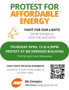 We will also speak out against the outrageous 11% rate increase We Energies has imposed and how it has affected underserved communities in Milwaukee.