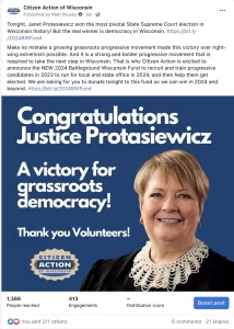This week, Janet Protesiewicz won the most pivotal State Supreme Court election in Wisconsin history! But the real winner is democracy in Wisconsin.