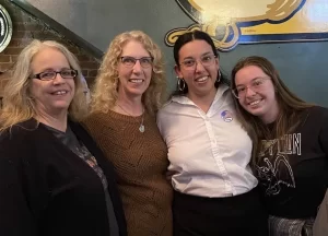 (Caption: Driftless Region Co-Op Organizer Kristie Tweed with Allison Islam (Khadija’s Mom), Khadijah Islam, and CAW volunteer Indiana Hauser)