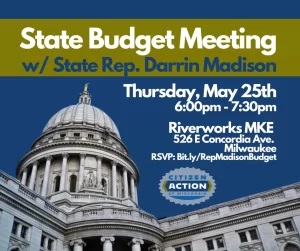 Join us for state budget meeting with Rep. Darrin Madison in MKE, Thursday, May 25th, 6:00pm.