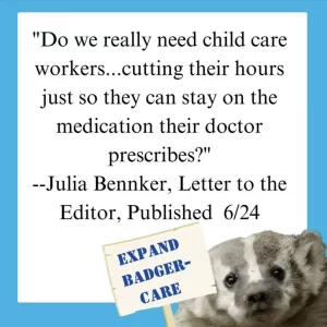 This week, Northwest Wisconsin Co-Op Member Julia Bennker called on Gov. Evers to expand BadgerCare, publishing her powerful letter in the Eau Claire Leader-Telegram.