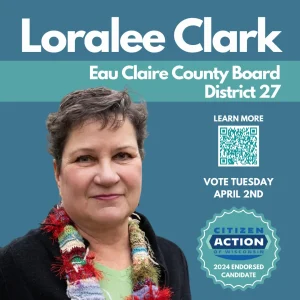 Loralee is motivated, with a strong campaign plan focused on knocking doors and meeting as many people as possible across her district in the City of Eau Claire and the Town of Seymour.