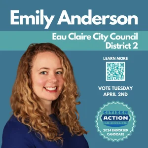 Emily Anderson is a longtime Citizen Action member and very values-aligned. She understands the need for grassroots and co-governance to get things done.