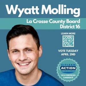 Wyatt Molling is a longtime member and leader of the Citizen Action Driftless Organizing Co-Op who has been active on our climate, healthcare and endorsement teams.