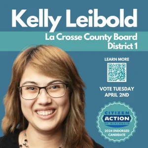 Kelly is well aligned with Citizen Action and will work with members on implementing our shared goals, including healthcare and fighting climate change.