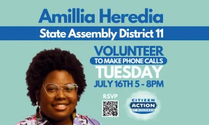 Volunteer to make calls for Amillia Heredia on Tuesday, July 16th, 5pm.