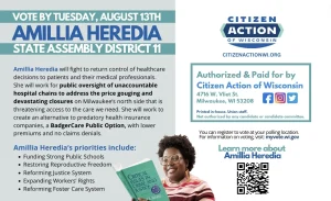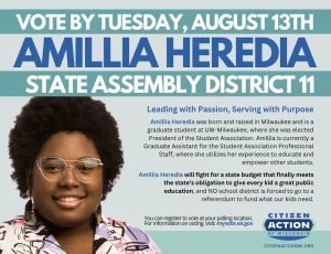 To get involved helping elect Amillia Heredia with Citizen Action, contact: Maletha.Jones@citizenactionwi.org