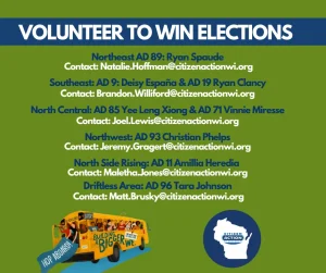 - Help elect Deisy España with Citizen Action, contact: Brandan.Williford@citizenactionwi.org
