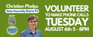 - Help elect Christian Phelps with Citizen Action, contact: Jeremy.Gragert@citizenactionwi.org