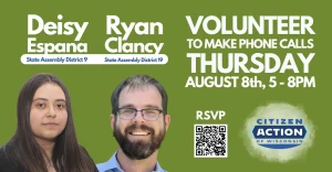 SIGN UP to Volunteer with Citizen Action’s Phone Bank for State Legislative Candidates next Tuesday and Thursday, 5pm.