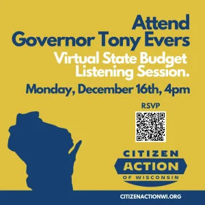 • If you want to get involved in Citizen Action’s Climate justice state budget campaign, contact: Kat.Klawes@citizenactionwi.org.