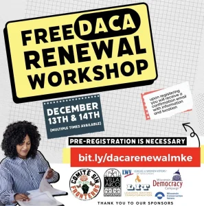 Given the urgency and uncertainty surrounding DACA recipients’ protection, Comite Sin Fronteras is hosting a FREE DACA Renewal Clinic in Milwaukee, anyone from Wisconsin that needs the support is encouraged to register and attend: