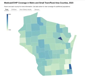 Use an interactive map to hover over each Wisconsin county for more information on Medicaid usage rates.