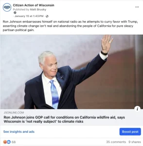 Robert debriefs Biden’s historically significant farewell address, which includes stark warning about the rising oligarchy and climate crisis. We also review the accomplishments of the Biden Administration as we hurdle towards a dangerous period in American history, Meanwhile, Senator Ron Johnson embarrassed himself on NPR, denying climate change and calling for conditioning California disaster relief to environmentally unhinged MAGA demands.