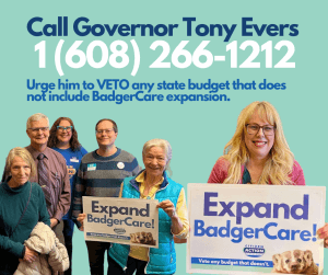 Call your state legislators in support of expanding BadgerCare in the state budget. Call 1-800-362-9472.