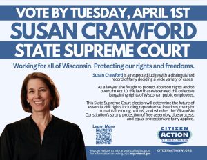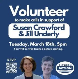 Absentee Ballots are out! Volunteer for Citizen Action’s Crawford/Underly virtual statewide phone bank, Tuesday, March 18th, 5pm.