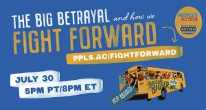 Join our us and our national network, People’s Action, for The Big Betrayal: How We Fight Forward, next Wednesday, July 30th, 7pm.