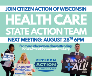 If you want to join with fellow Citizen Action leaders from around the state who volunteer to help lead Citizen Action’s healthcare organizing, contact: Kristie.Tweed@citizenactionwi.org
