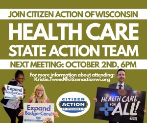 If you want to join with fellow Citizen Action leaders from around the state who volunteer to help lead Citizen Action’s healthcare organizing, contact: Kristie.Tweed@citizenactionwi.org
