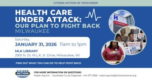 Join Citizen Action of Wisconsin for a community health care town hall in Milwaukee to learn what’s happening, hear from neighbors directly impacted, and find out how we can fight back together.