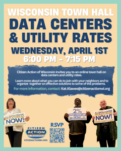 Attend Virtual Wisconsin Town Hall: Data Centers and Utility Rates, Wednesday, April 1st, 6pm