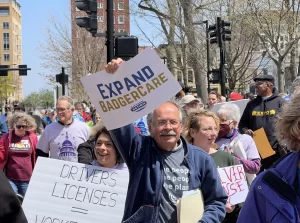 Speakers included State Rep. Kristina Shelton, Citizen Action Board Member Vik Verma and Citizen Action co-op member Peggy McDowell, who was forced to get divorced to qualify for BadgerCare because the GOP has refused to expand it.